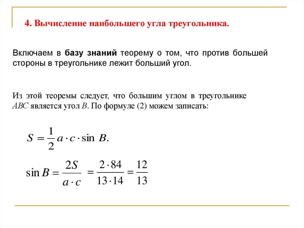 Причем, при вычислении углов треугольника предпочтительнее
