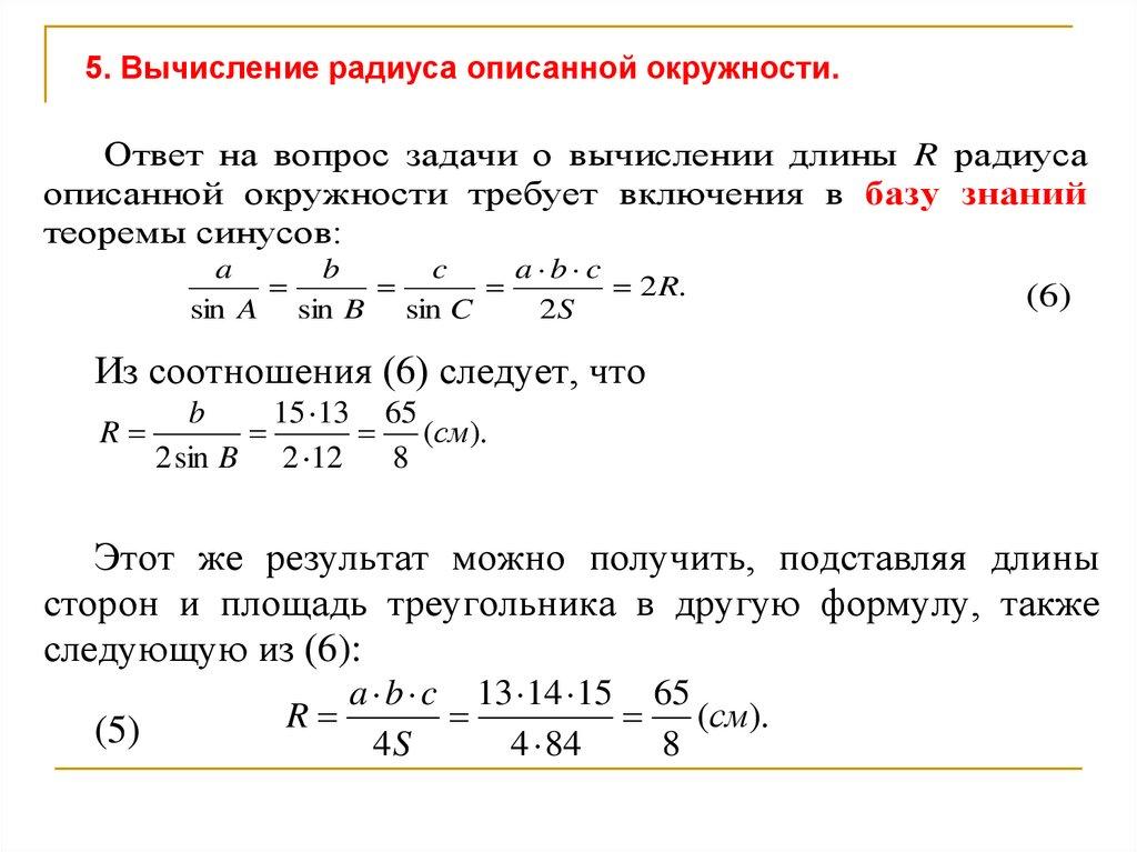 где R - радиус описанной окружности.