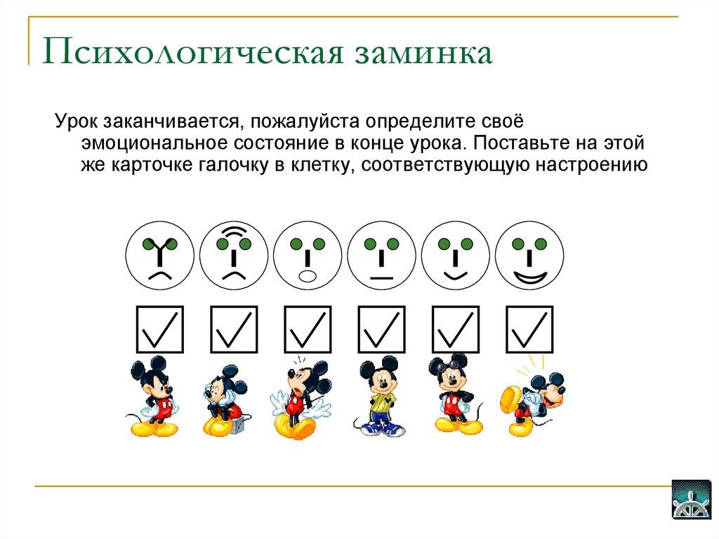эмоциональное состояние в конце урока. Поставьте на этой