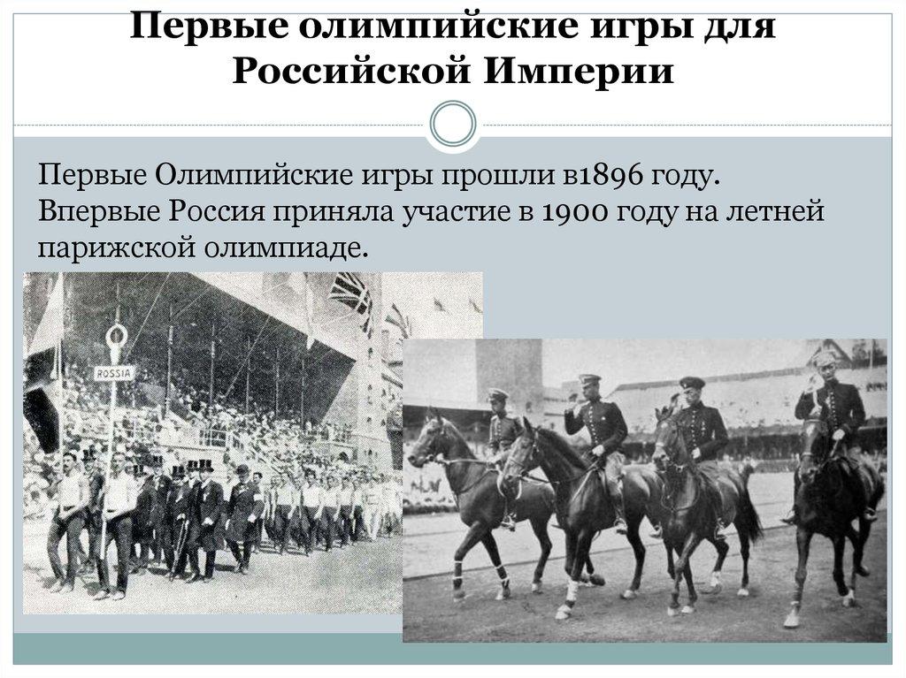 Первые Олимпийские игры прошли в1896 году.Впервые Россия приняла участие в 1900 году на летней