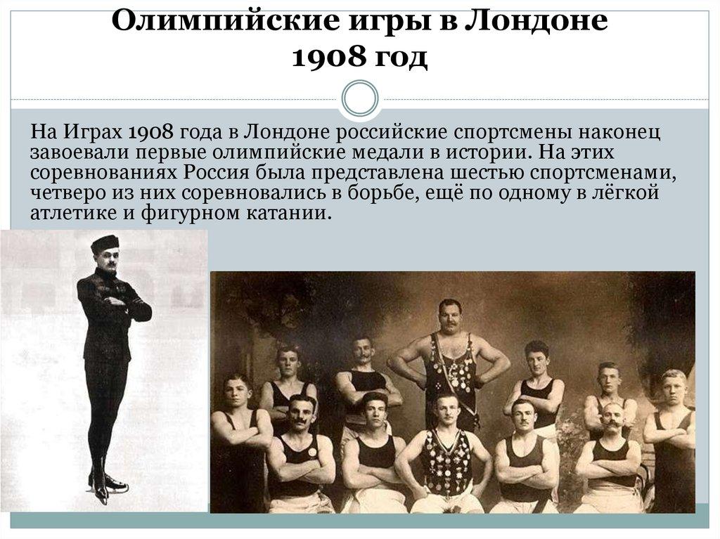 На Играх 1908 года в Лондоне российские спортсмены наконецзавоевали первые олимпийские медали в истории. На этих
