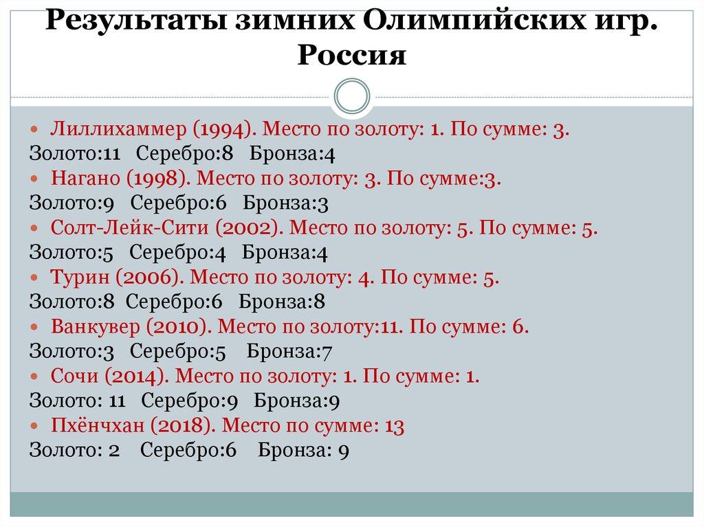 27. Результаты зимних Олимпийских игр. Россия
