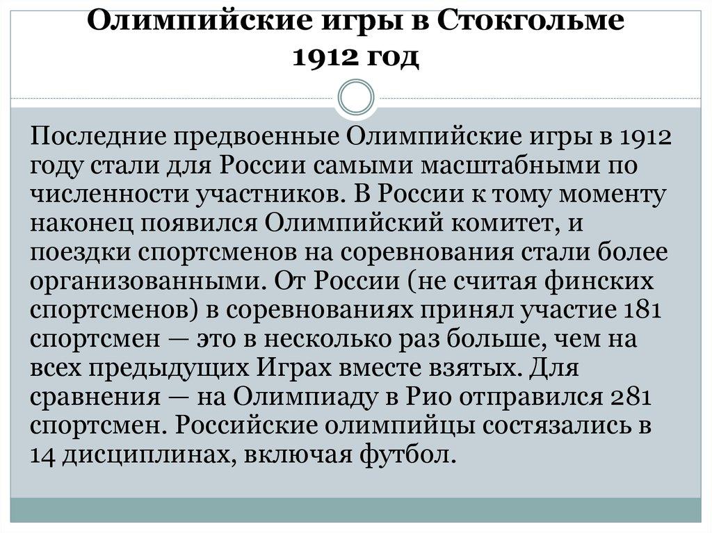 Последние предвоенные Олимпийские игры в 1912году стали для России самыми масштабными по