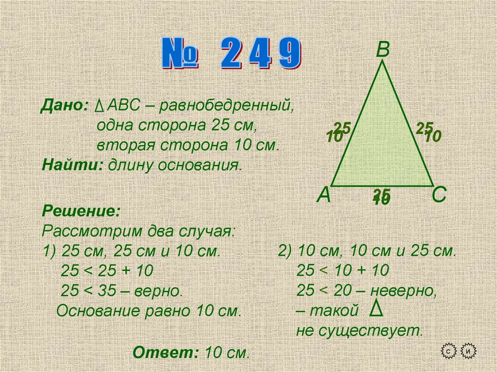 10. Найти третью сторону равнобедренного треугольника, если известны две его стороны: