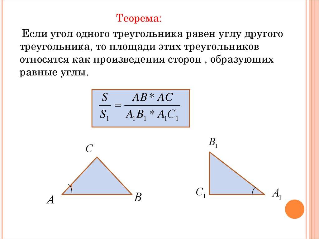 Теорема:Если угол одного треугольника равен углу другого
