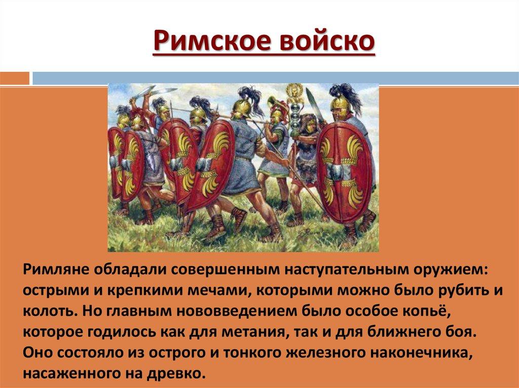 Римляне обладали совершенным наступательным оружием:острыми и крепкими мечами, которыми можно было рубить и
