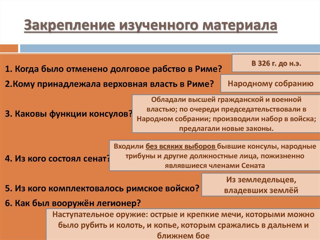 1. Когда было отменено долговое рабство в Риме?2.Кому принадлежала верховная власть в Риме?