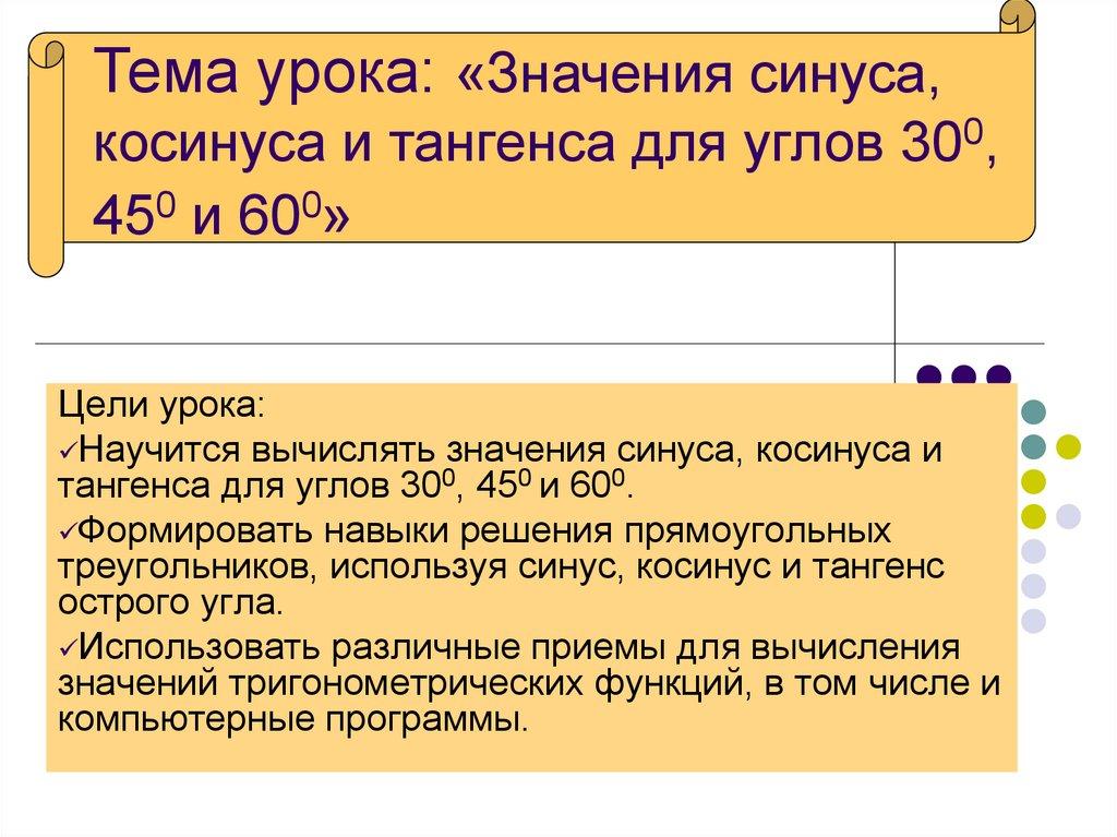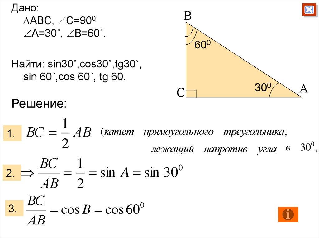 2. Синус, косинус и тангенс острого угла прямоугольного треугольника