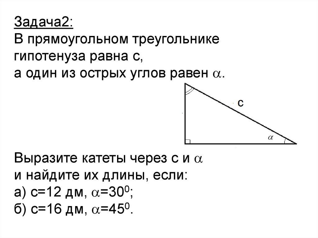 Задача2:В прямоугольном треугольнике