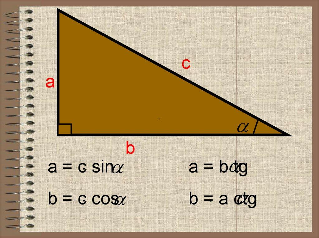 СВ = AC sin α = c sin α cos α