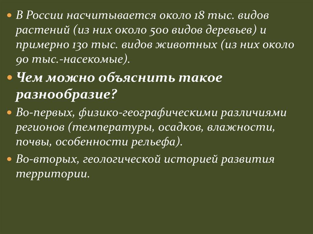 В России насчитывается около 18 тыс. видоврастений (из них около 500 видов деревьев) и