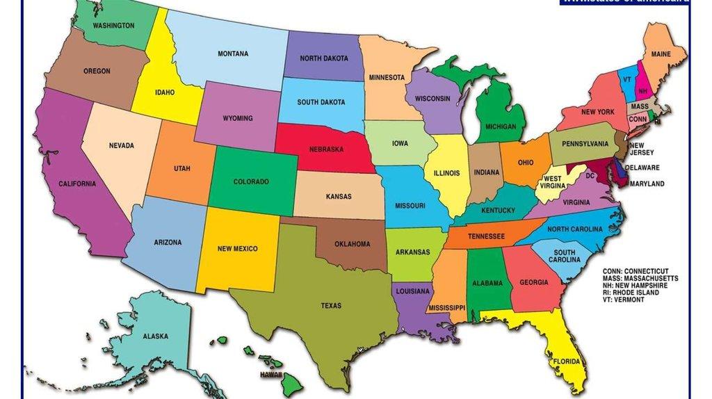 1.Обширная территория (9,5 млн. кв. км - 4-е место), 52 штата, 24 о-ва в Океании