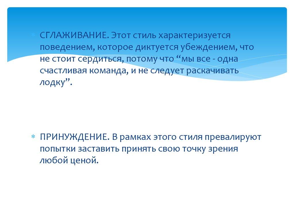 СГЛАЖИВАНИЕ. Этот стиль характеризуетсяповедением, которое диктуется убеждением, что