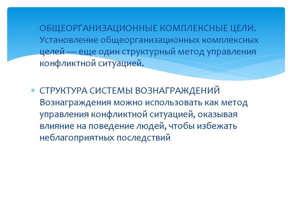ОБЩЕОРГАНИЗАЦИОННЫЕ КОМПЛЕКСНЫЕ ЦЕЛИ.Установление общеорганизационных комплексных