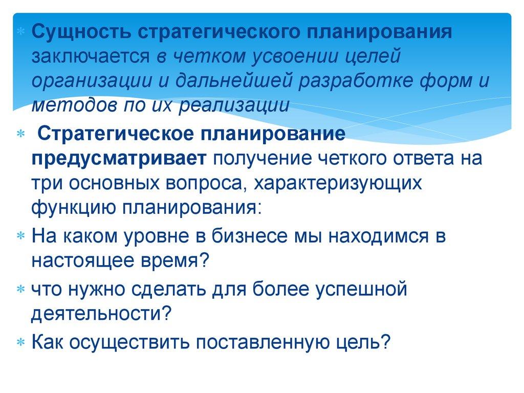 2. 1. Сущность стратегического планирования