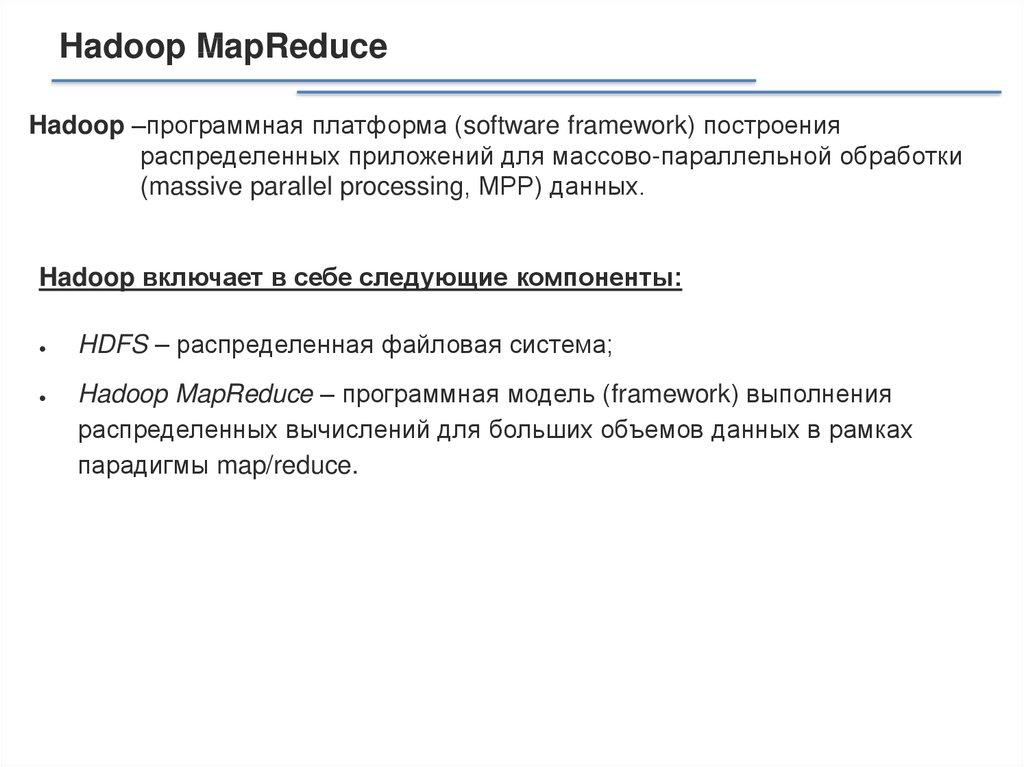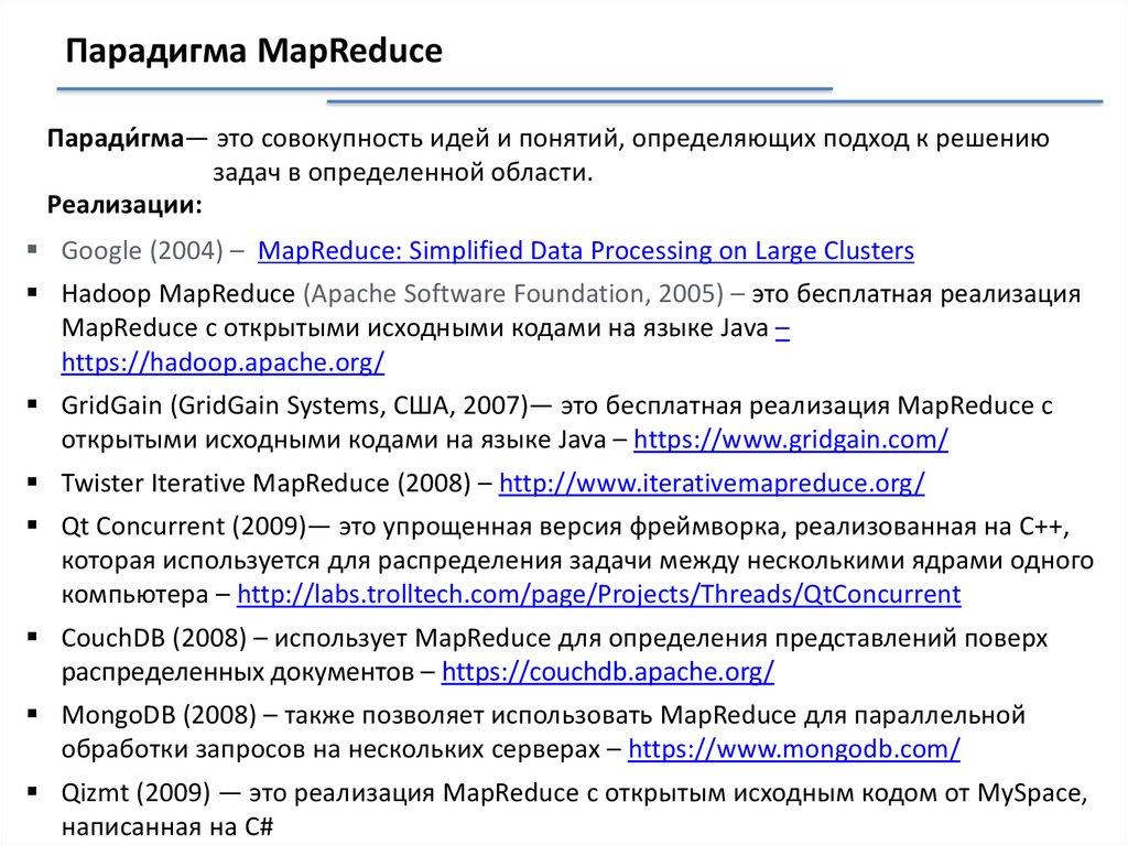 Hadoop MapReduce (Apache Software Foundation, 2005) – это бесплатная реализация