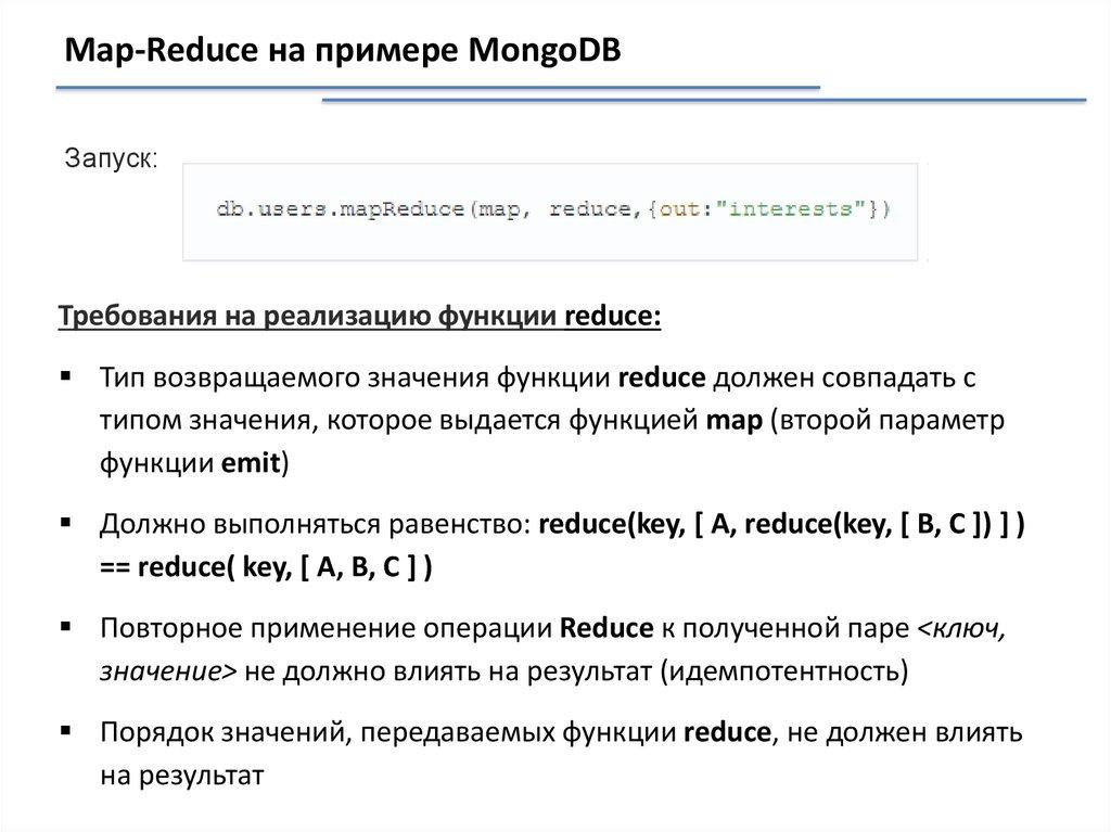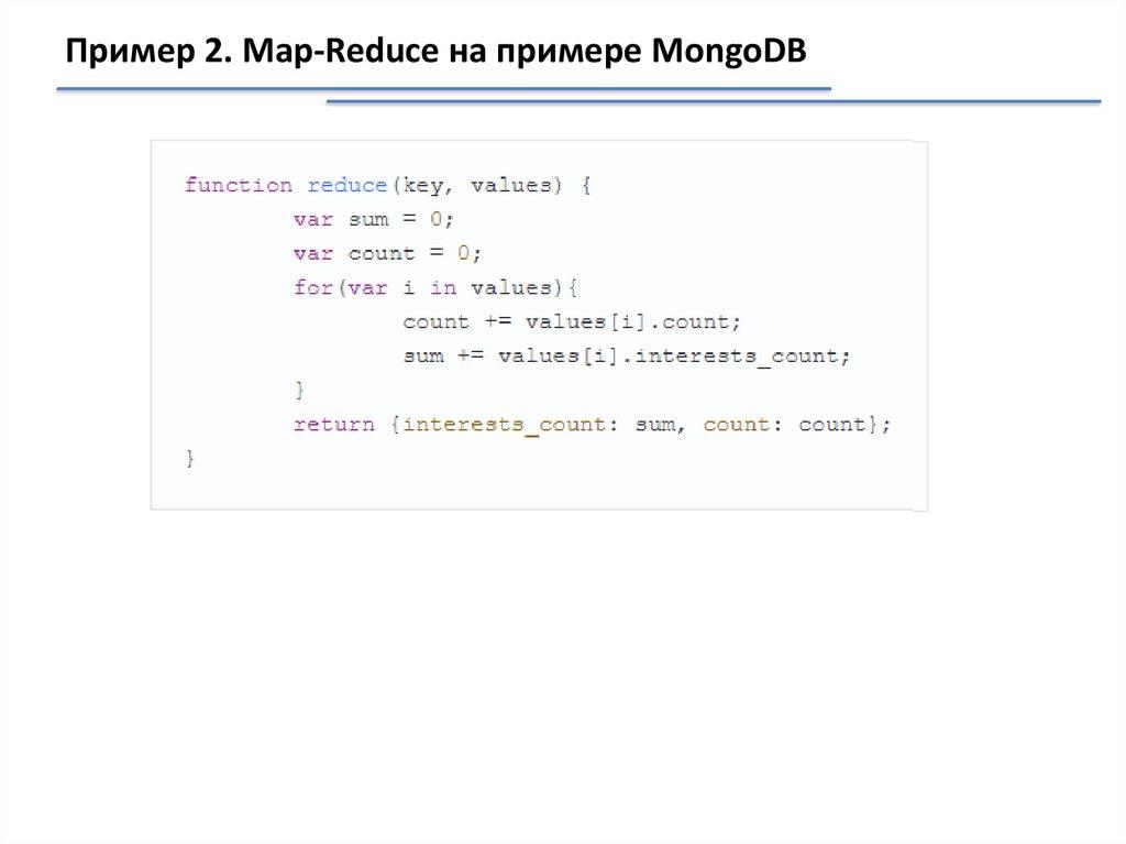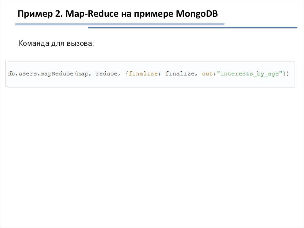 Пример 2. Map-Reduce на примере MongoDBКоманда для вызова: