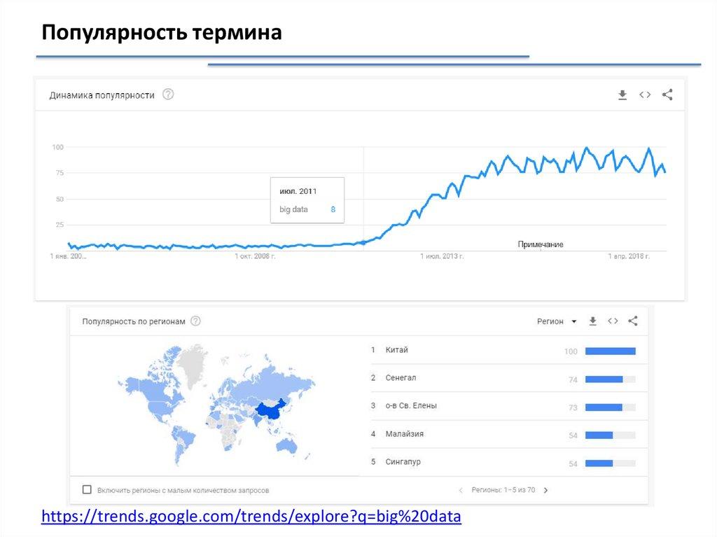 Популярность терминаhttps://trends.google.com/trends/explore?q=big%20data