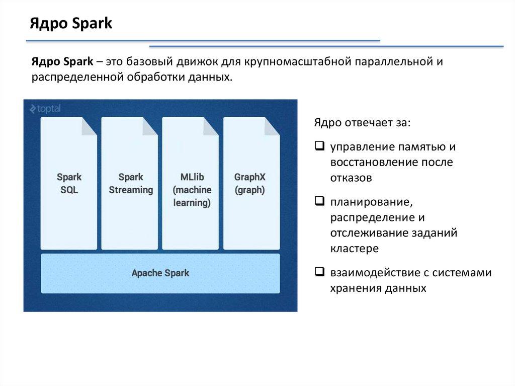 Ядро SparkЯдро Spark – это базовый движок для крупномасштабной параллельной и