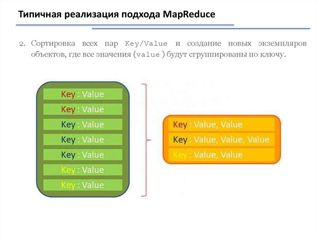 Типичная реализация подхода MapReduce2. Сортировка всех пар Key/Value и создание новых экземпляров