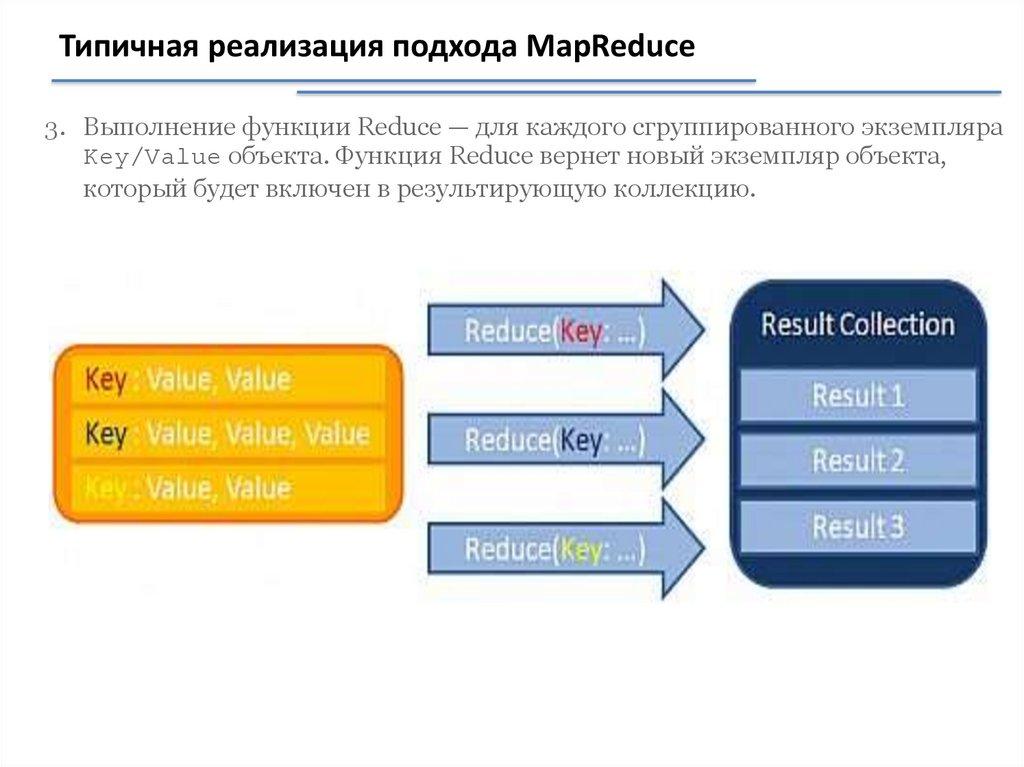 Типичная реализация подхода MapReduce3. Выполнение функции Reduce — для каждого сгруппированного экземпляра