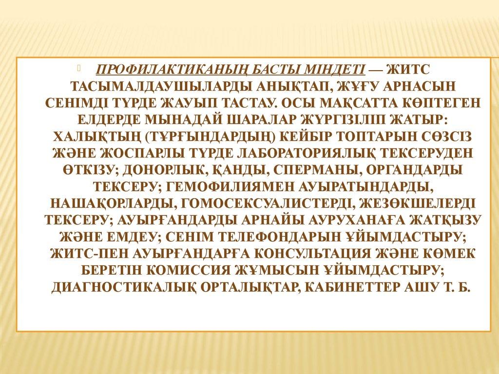 ПРОФИЛАКТИКАНЫҢ БАСТЫ МІНДЕТІ — ЖИТСТАСЫМАЛДАУШЫЛАРДЫ АНЫҚТАП, ЖҰҒУ АРНАСЫН