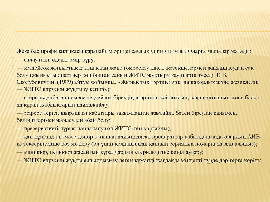 болу (жыныстық партнер көп болған сайын ЖИТС жұқтыру қаупі арта түседі. Г. В.
