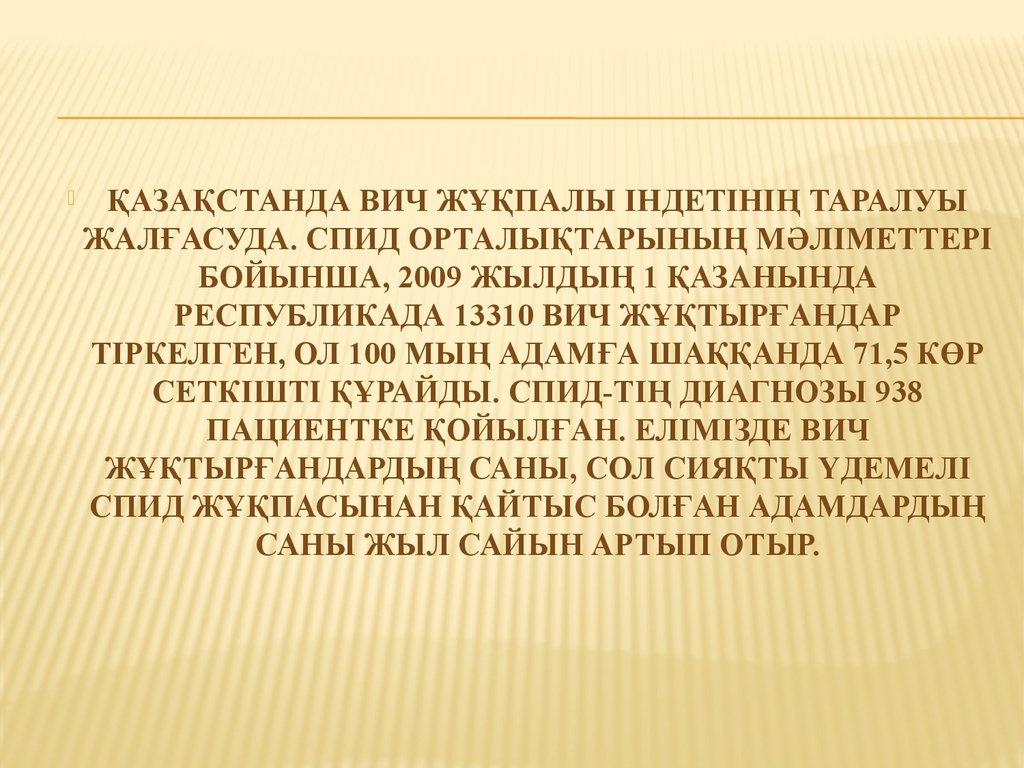ҚАЗАҚСТАНДА ВИЧ ЖҰҚПАЛЫ ІНДЕТІНІҢ ТАРАЛУЫЖАЛҒАСУДА. СПИД ОРТАЛЫҚТАРЫНЫҢ МӘЛІМЕТТЕРІ