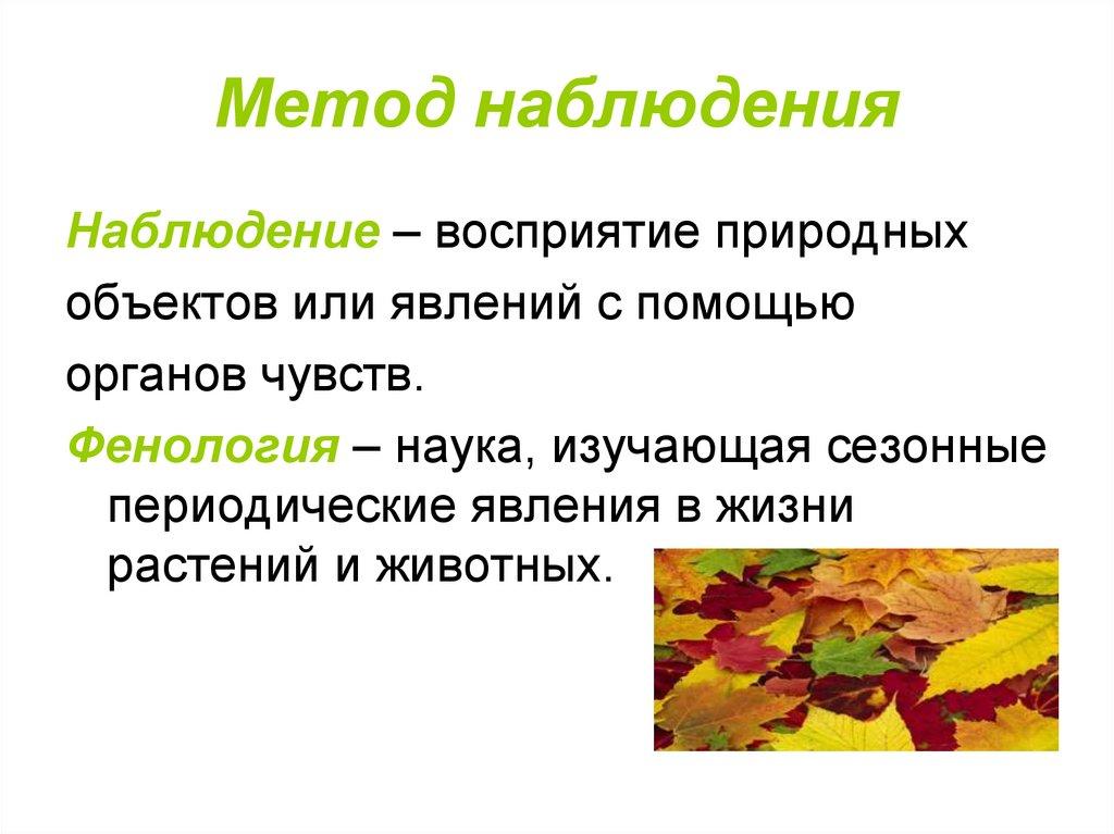 Наблюдение – восприятие природныхобъектов или явлений с помощью