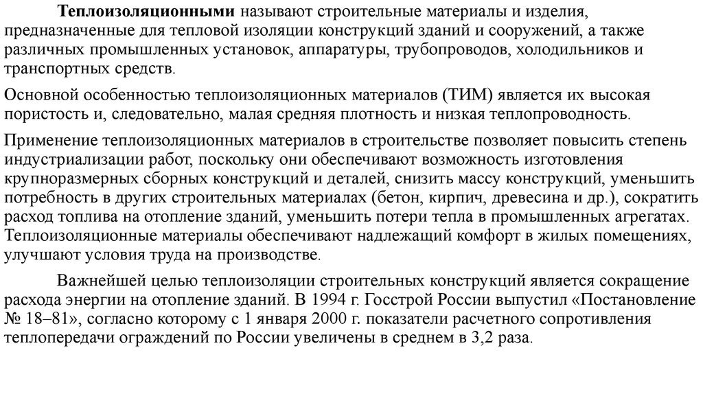 Теплоизоляционными называют строительные материалы и изделия,предназначенные для тепловой изоляции конструкций зданий и сооружений, а также