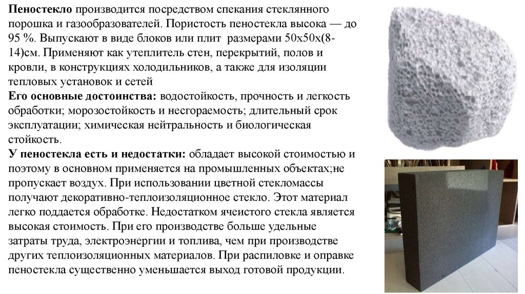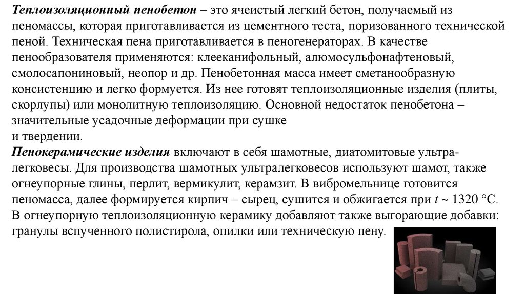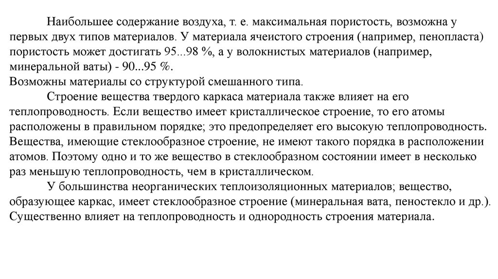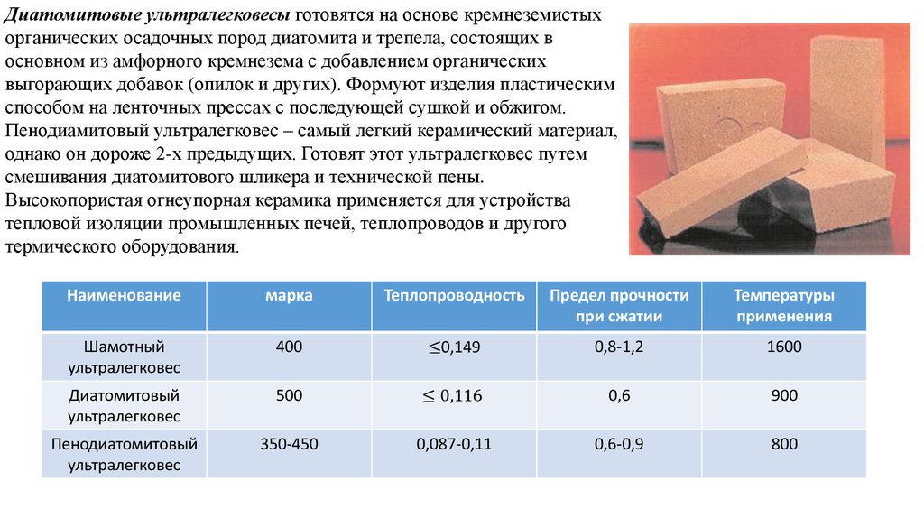 пористость и, следовательно, малая средняя плотность и низкая теплопроводность.