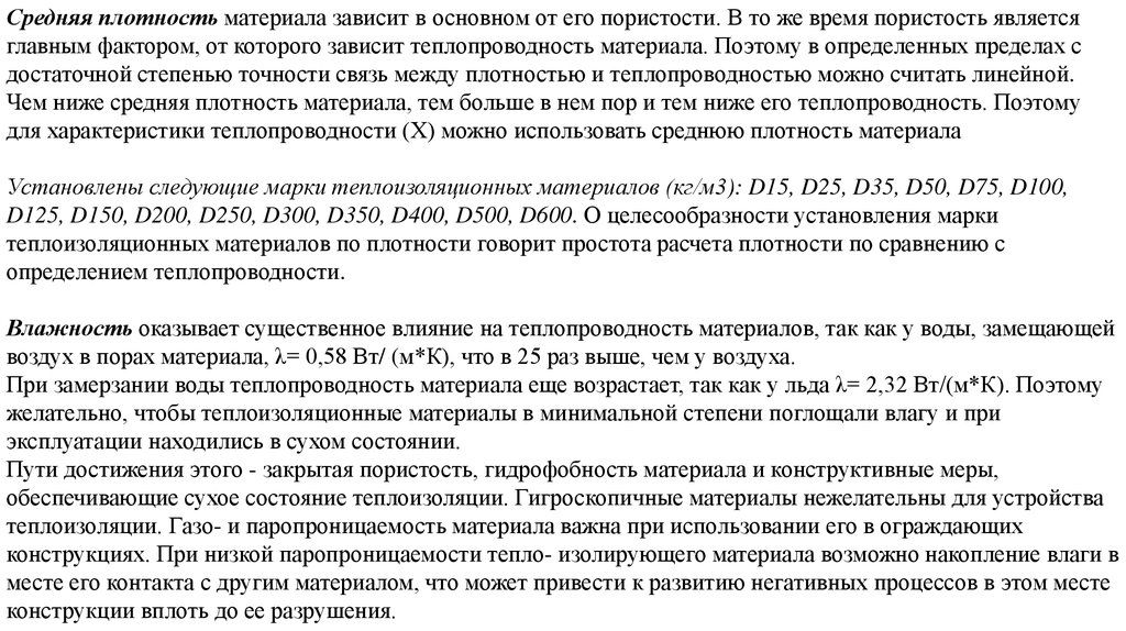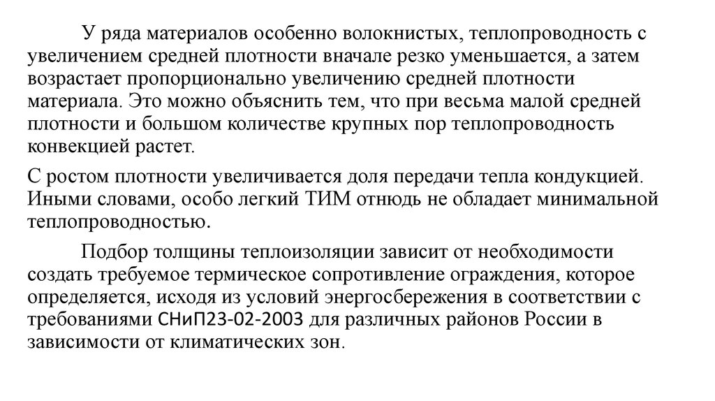 У ряда материалов особенно волокнистых, теплопроводность сувеличением средней плотности вначале резко уменьшается, а затем