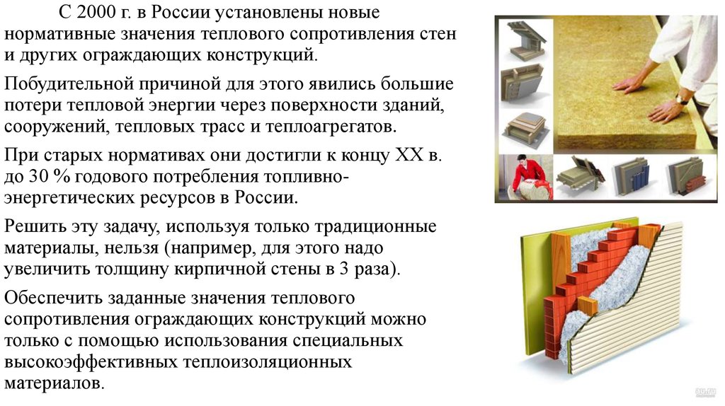 С 2000 г. в России установлены новыенормативные значения теплового сопротивления стен