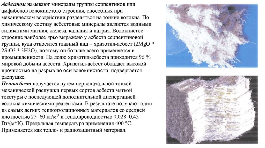 являются: мел, полевой шпат, асбестовое волокно и др. В свежем