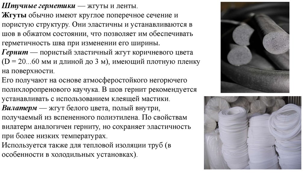 Штучные герметики — жгуты и ленты.Жгуты обычно имеют круглое поперечное сечение и