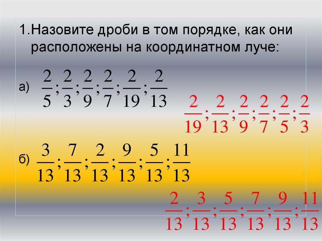 1.Назовите дроби в том порядке, как онирасположены на координатном луче: