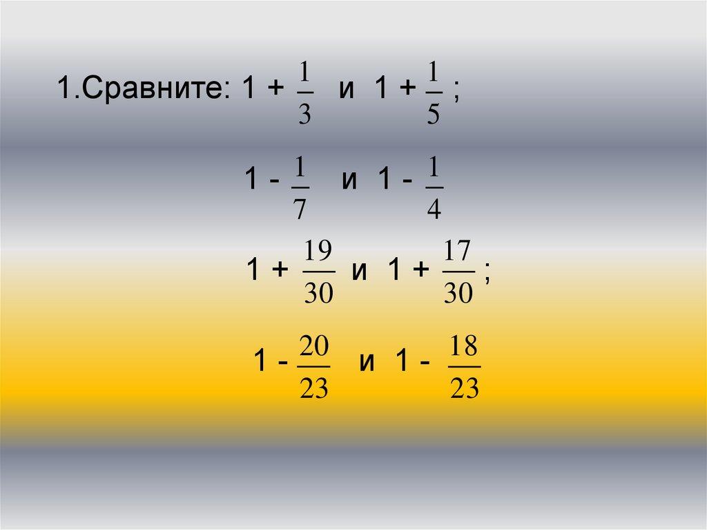 1.Сравните: 1 +