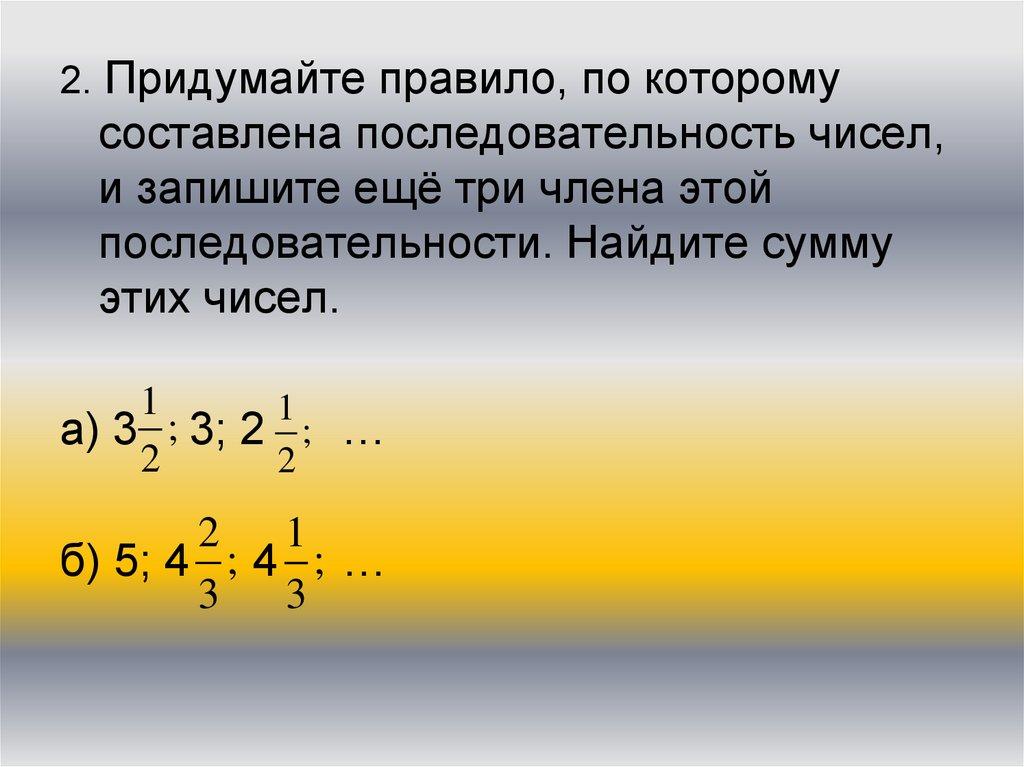 2. Придумайте правило, по которомусоставлена последовательность чисел,