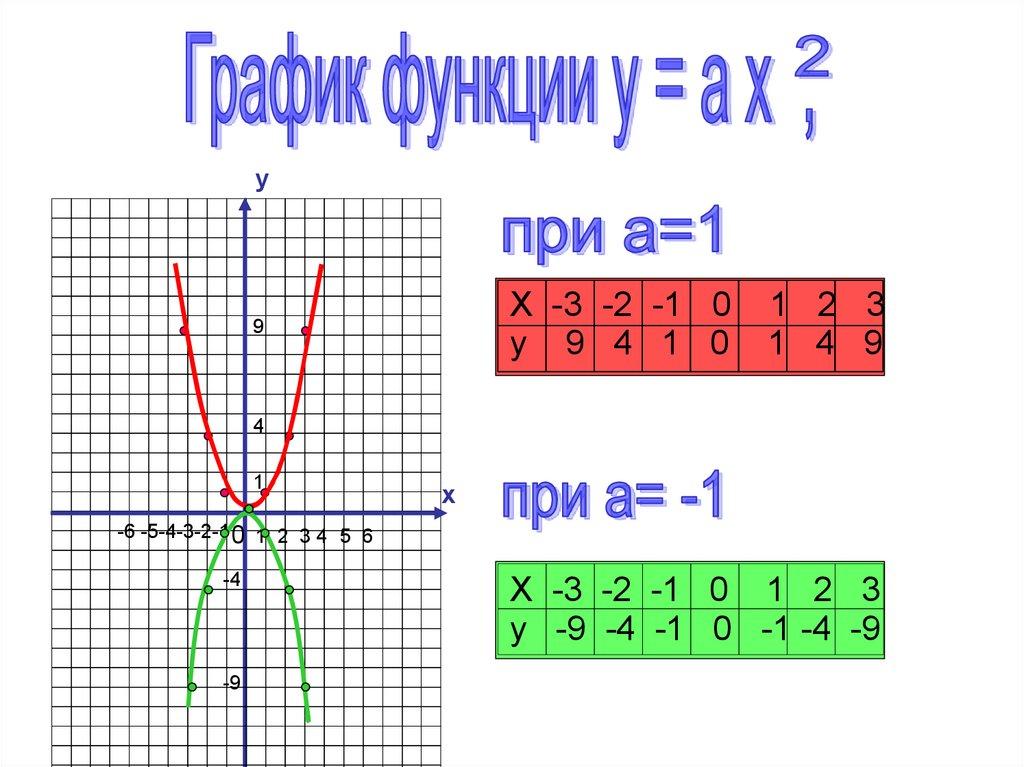 Графиком квадратичной функции является парабола,ветви которой направлены вверх(если а>0) или вниз