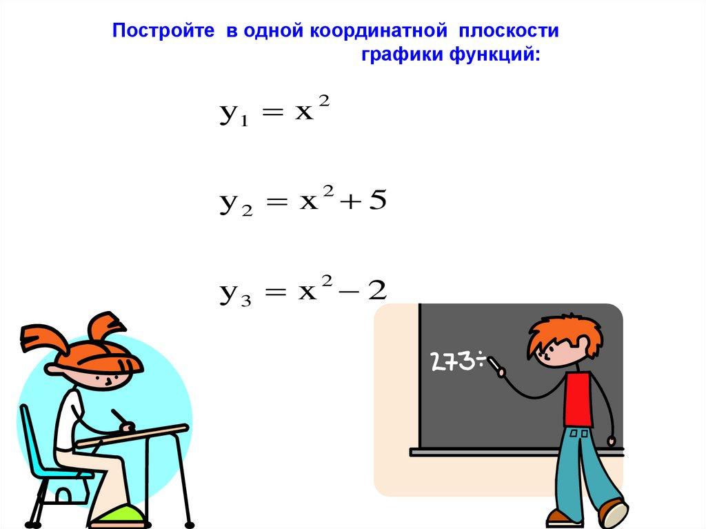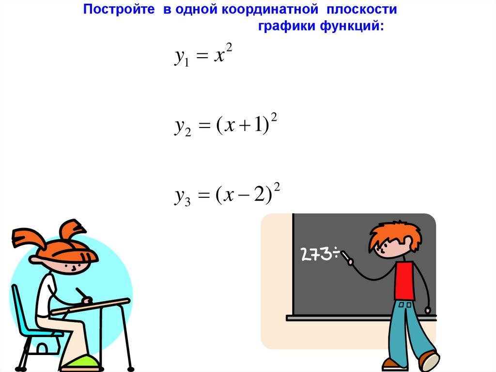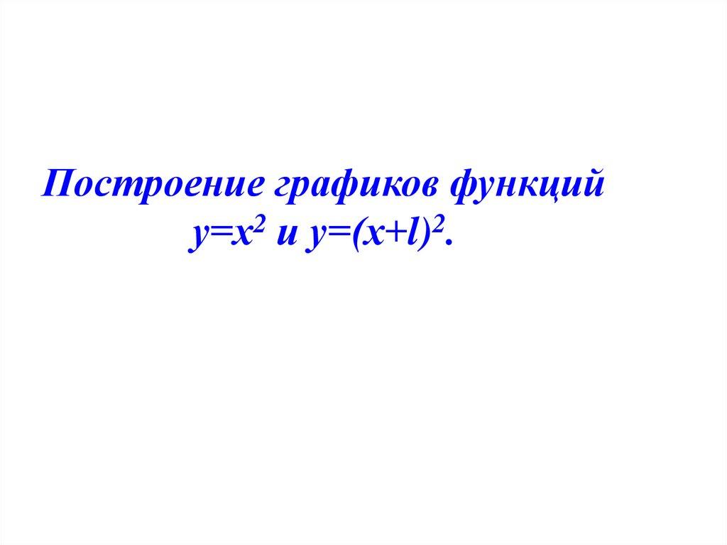 Построение графиков функцийу=х2 и у=(х+l)2.