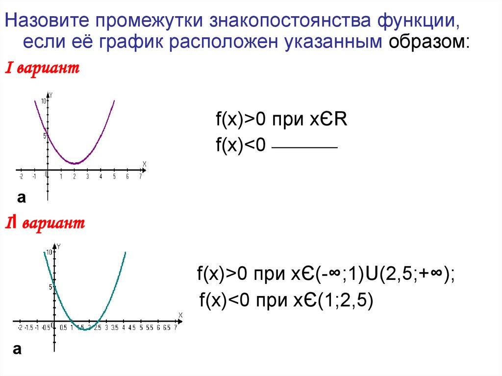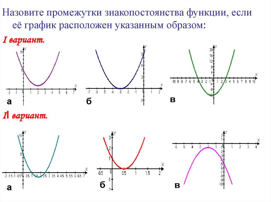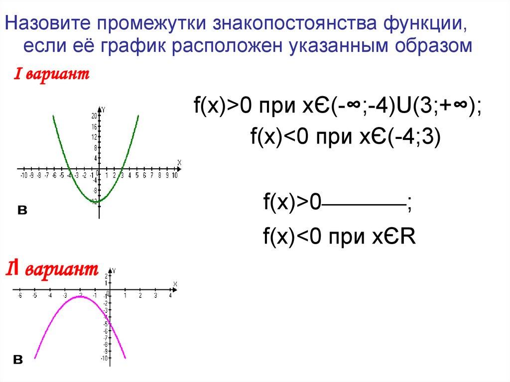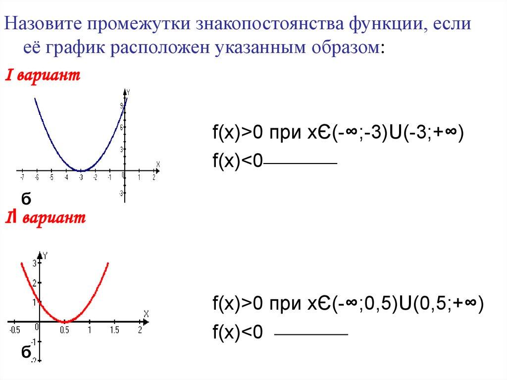 Назовите промежутки знакопостоянства функции,если её график расположен указанным образом