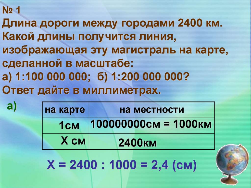 №1Длина дороги между городами 2400 км.
