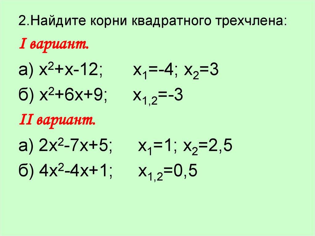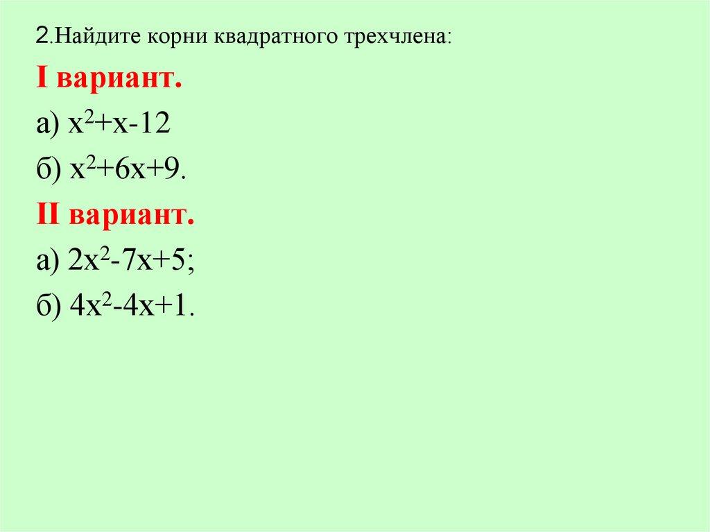2.Найдите корни квадратного трехчлена:Ι вариант.