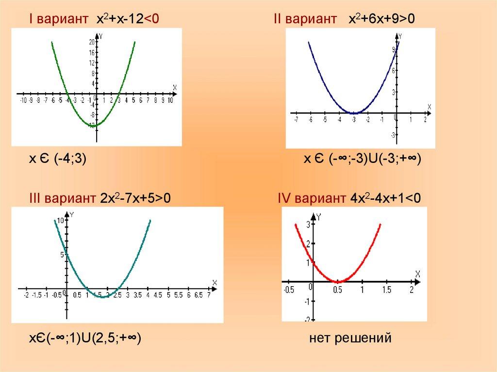 Ι вариант х2+х-12<0х Є (-4;3)