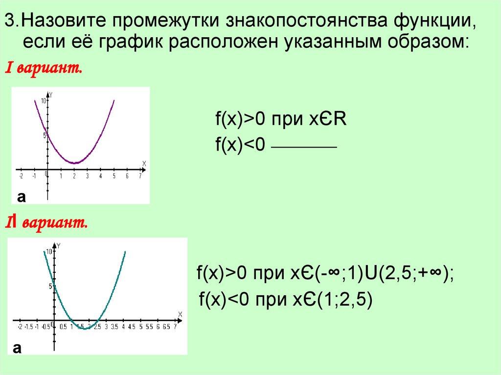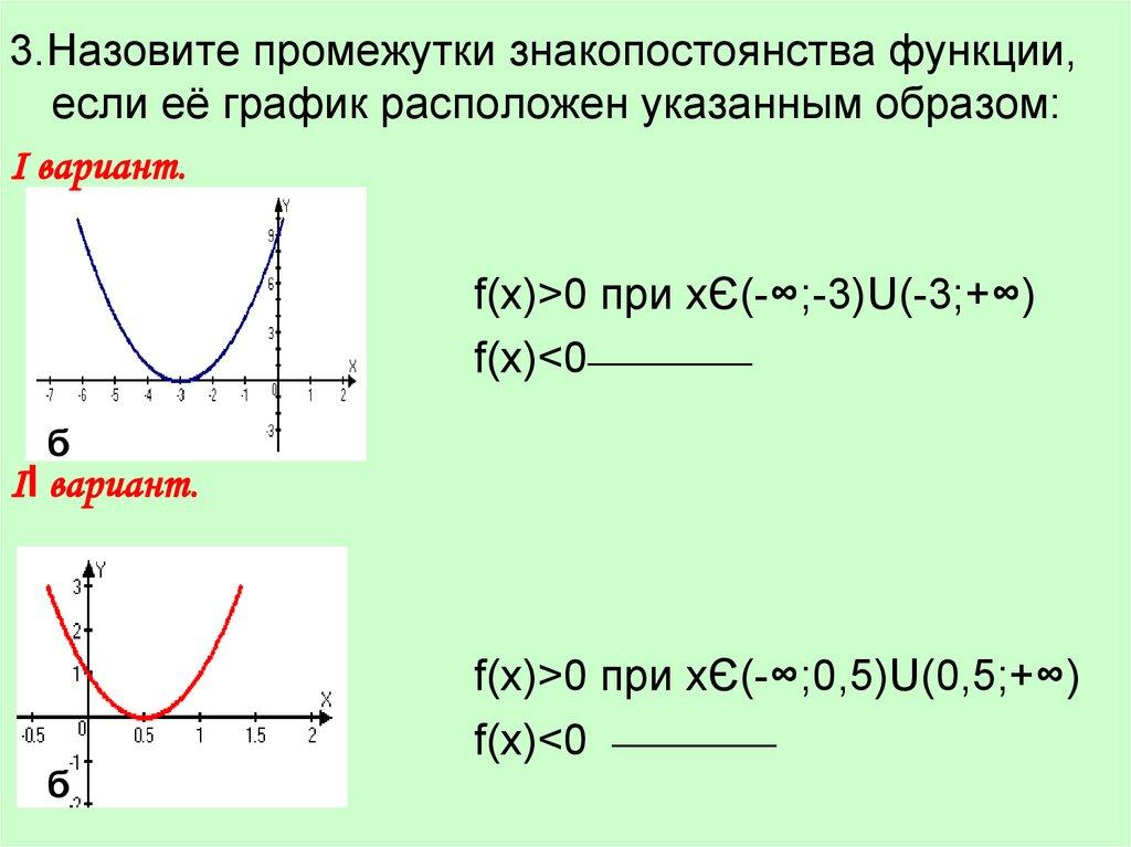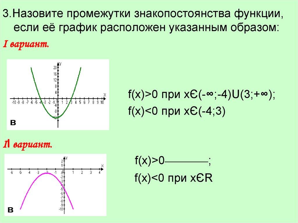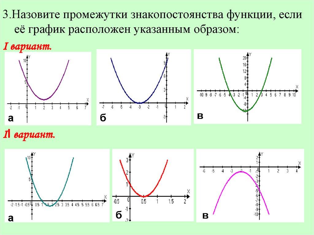 3.Назовите промежутки знакопостоянства функции, еслиеё график расположен указанным образом: