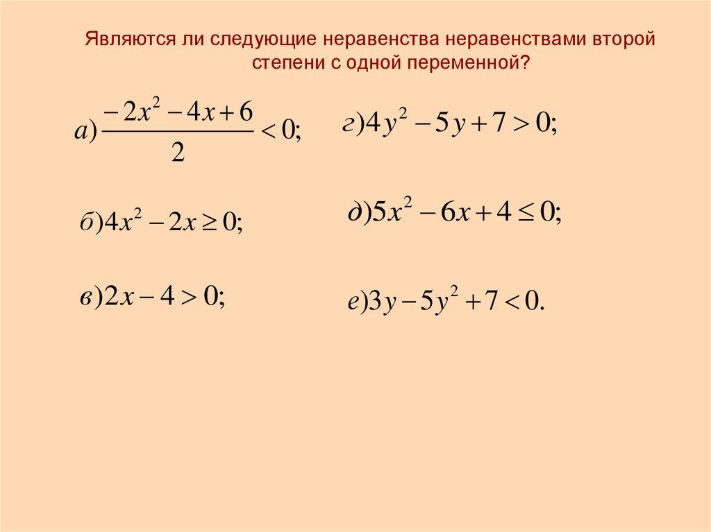Являются ли следующие неравенства неравенствами второйстепени с одной переменной?