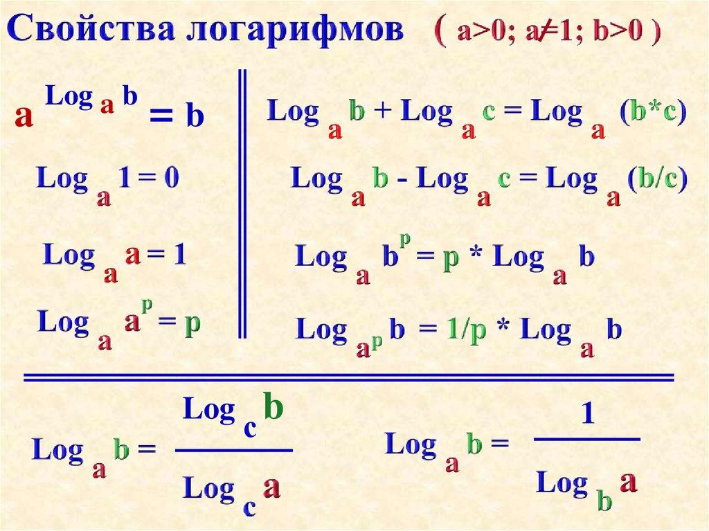 Свойства логарифмов. Логарифмическая функция