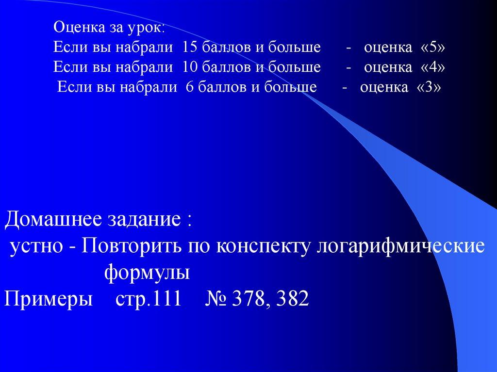 устно - Повторить по конспекту логарифмические