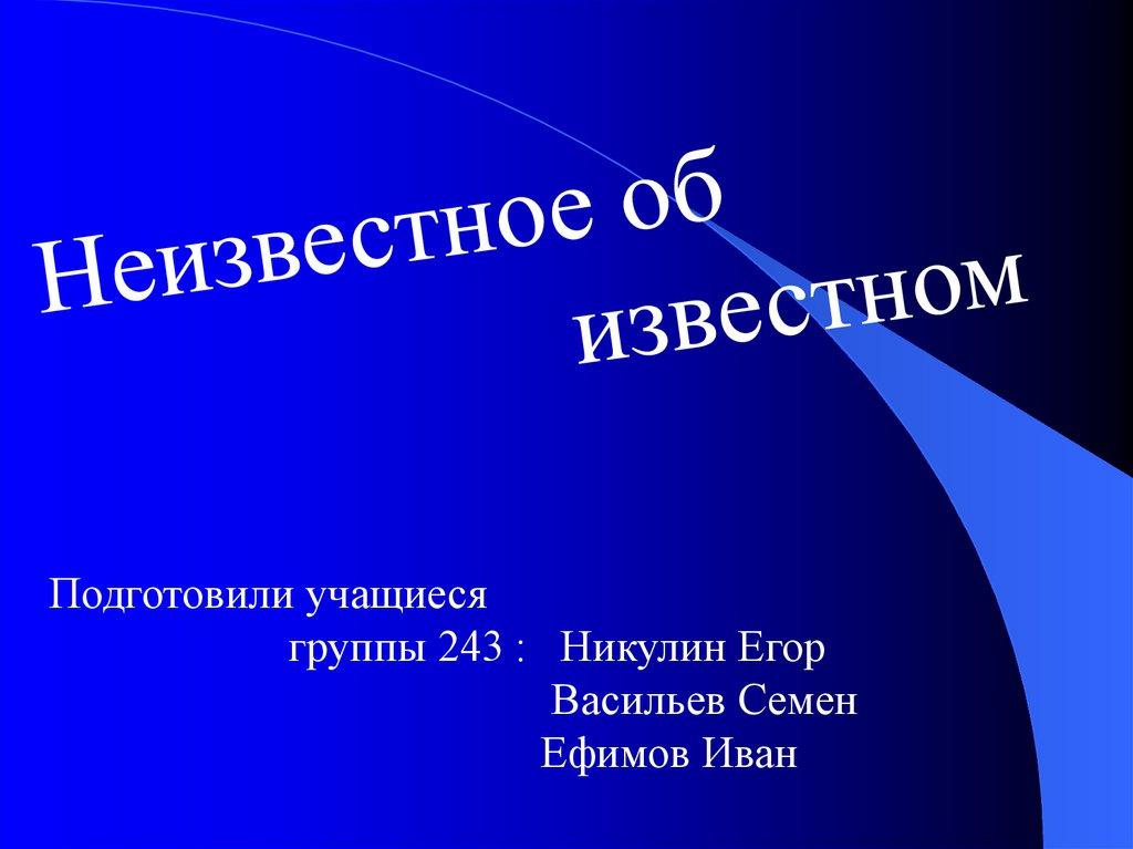 Подготовили учащиесягруппы 243 : Никулин Егор