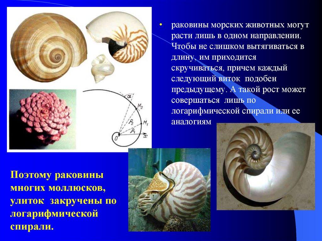 • раковины морских животных могутрасти лишь в одном направлении.